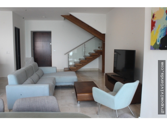 Hermoso apartamento tipo loft de 166m2, doble altura, cuenta con 1 recamara, 2 baños, sala, cocina y comedor integrados y 2 puestos de estacionamiento, Incluye muebles y línea blanca.