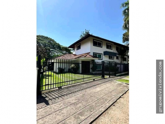 Completamente remodelada con Amplia sala comedor con techos doble altura ventanales piso a techo con vista a la terraza, Cocina Abierta, Den familiar, Cuarto y baño de empleada, Area de lavanderia, Depósito, 4 Habitaciones, 3 1/2 baños, Amplio jardín completamente cercado, Terraza techada, Piscina, Linea blanca completa