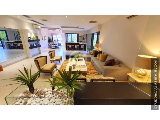 Hermoso Penthouse con 358.04 m2 de construcción y cuenta con: 4 Habitaciones con baño (La principal con walking closet, terraza, balcón y baño con ducha y bañera), 4 baños, ½ Baño de Visitas, Amplia Sala con Bar y Amplio Balcón Panorámico, Comedor con balcón, Sala Familiar Cerrada (Convertible en 5ta habitación), Amplia cocina con sobre de granito, isla central y desayunador, Lavandería, Cuarto y Baño de empleada, 3 puestos de estacionamiento, Depósito en el apartamento y además con el siguiente equipamiento: Modernas Lámparas y molduras con luces led, 3 abanicos (2 en balcón, 1 en habitación 4), 9 Aires acondicionados tipo Split, Persianas, Línea Blanca: Nevera duplex (Refrigeradora y Congeladora) Frigidaire Profesional, Estufa a Gas Empotrada, Campana Extractora, Torre con Horno y Microondas, Lavadora, Secadora, Calentador de Agua, Dishwasher.